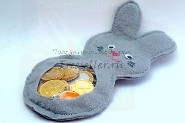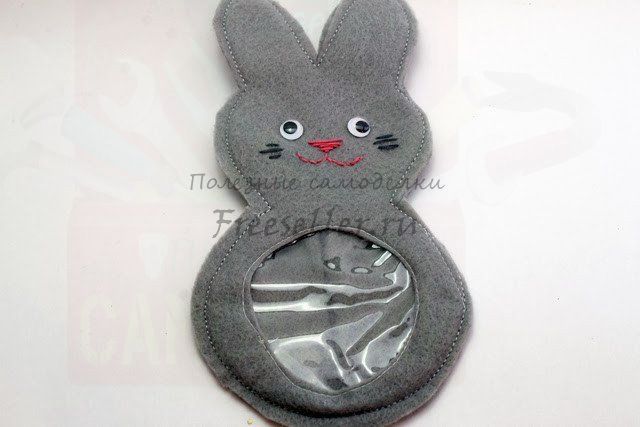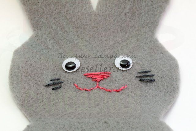 3. Пришейте глаза. Вышьете рот и нос кролика.