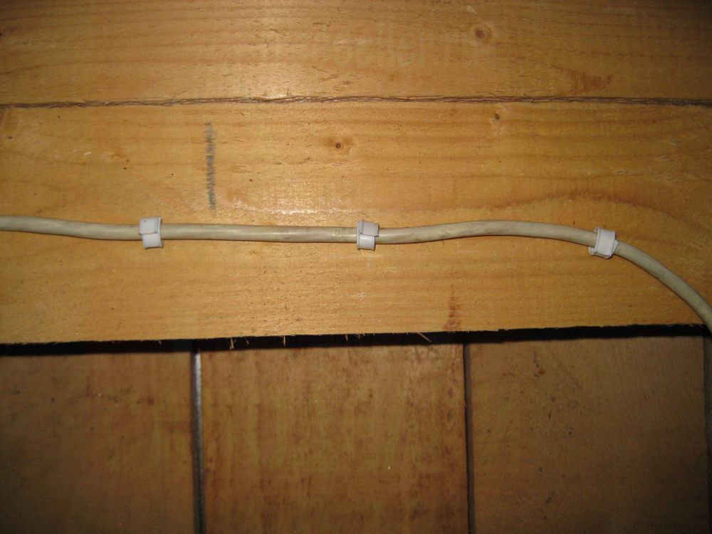 Причем этот способ больше подходит для закрепления проводов на деревянных стенах, где-нибудь в сарае или в подсобном помещении.