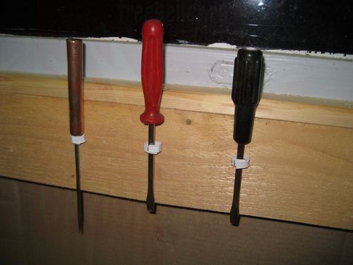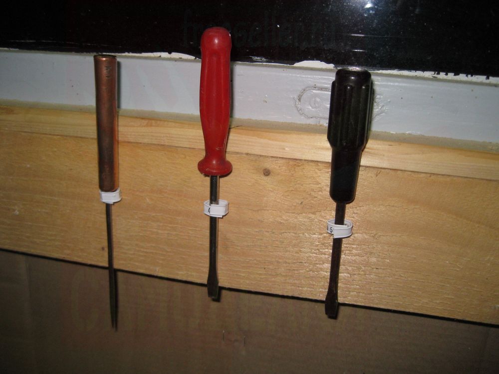 Данные хомуты можно с успехом использовать в качестве держателей для не тяжелого ручного инструмента (отверток, шила и т.д.).