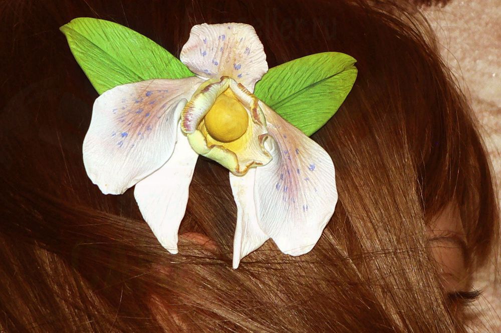Создание аксессуара для волос в виде орхидеи из полимерной глины - процесс длительный и трудоемкий.
