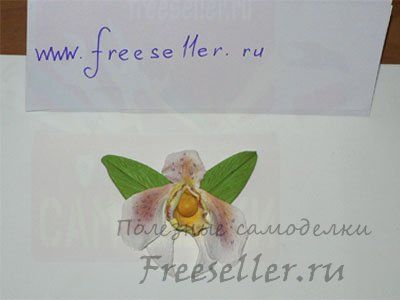 Теперь берем зеленую пластику и формируем листья орхидеи.