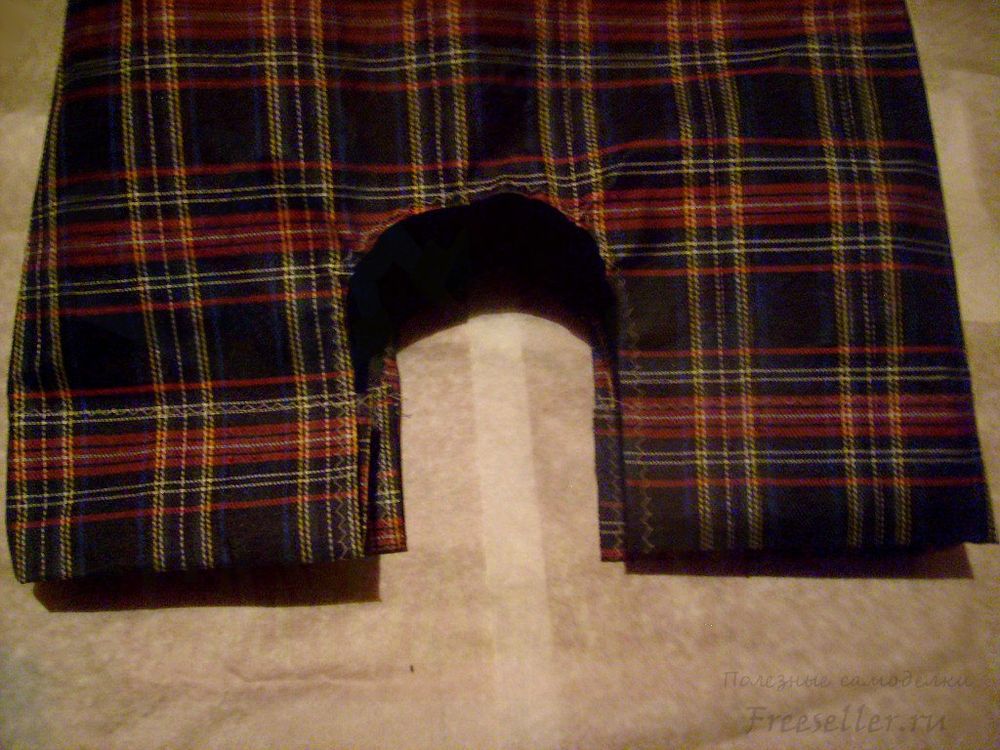 Вставляем ручки. Пришиваем их за стропу к подворотам прорезей потайными стежками.