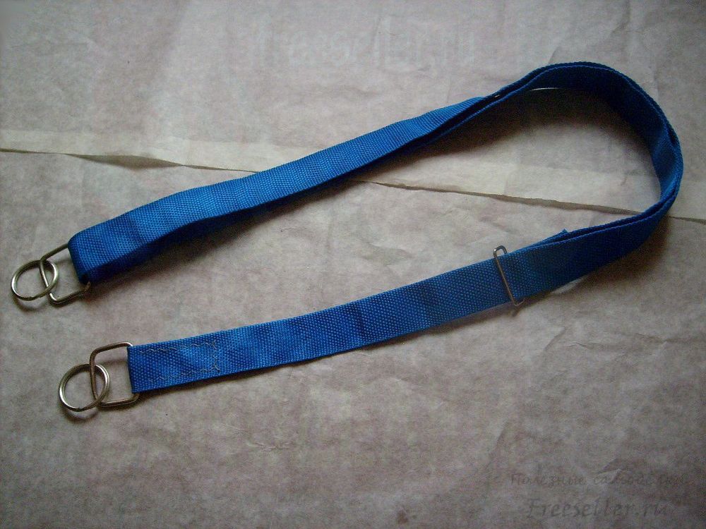 7. Из стропы и пряжек мастерим наплечный ремень. Надеваем на пряжки соединительные кольца.