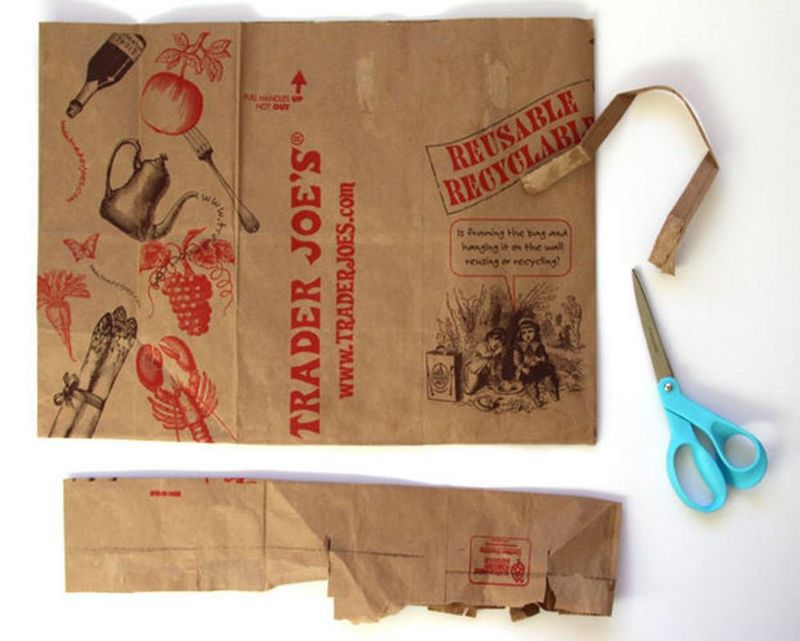 От пакета отрезают донышко и ручки. Далее разрезают пакет вдоль и разглаживают его. Лист собирают пополам в длину продолговатой стороны по четыре раза. Бумагу необходимо складывать как можно ровнее. Лист выходит в виде гармошки с 16 поверхностями. То же самое проделывают со вторым пакетом, однако складывают его всего 8 раз.