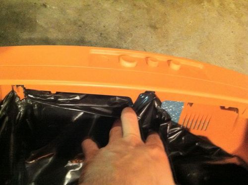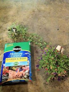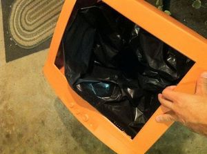 Внутренняя часть клумбы-монитора обкладывается пластиковым пакетом (подойдет большой темный пакет для мусора). Необходимо удерживать пакет на месте, пока в клумбу будет засыпаться земля. В нижней части пакета рекомендуется проделать несколько отверстий, чтобы лишняя вода уходила. Цветы подготавливаются в высадке в грунт.