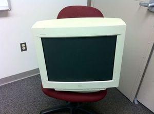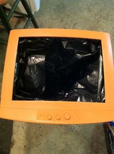 Монитор устанавливается на ровной поверхности, чтобы детали, которые подвергаются демонтажу, не падали вниз. Сначала выкручиваются винты, крепящие вакуумный корпус ЭЛТ на передней панели. Их шесть. Извлекая содержимое монитора, которое долгое время находилось под током, необходимо соблюдать осторожность. Чтобы снизить опасность до минимума, нужно аккуратно, не повреждая провода и экран, извлечь их из корпуса.