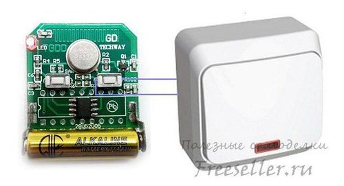 Теперь можно независимо управлять освещением от выключателя и беспроводного пульта ДУ. Если через пару лет перестанет работать выключатель, не паникуйте, просто замените элемент питания передатчика. Питать передатчики можно от элемента 27А или 23A, который можно свободно приобрести в любом супермаркете. Дополнительный канал можно использовать в качестве сюрприза для гостей включая дополнительное освещение, например звездное небо.