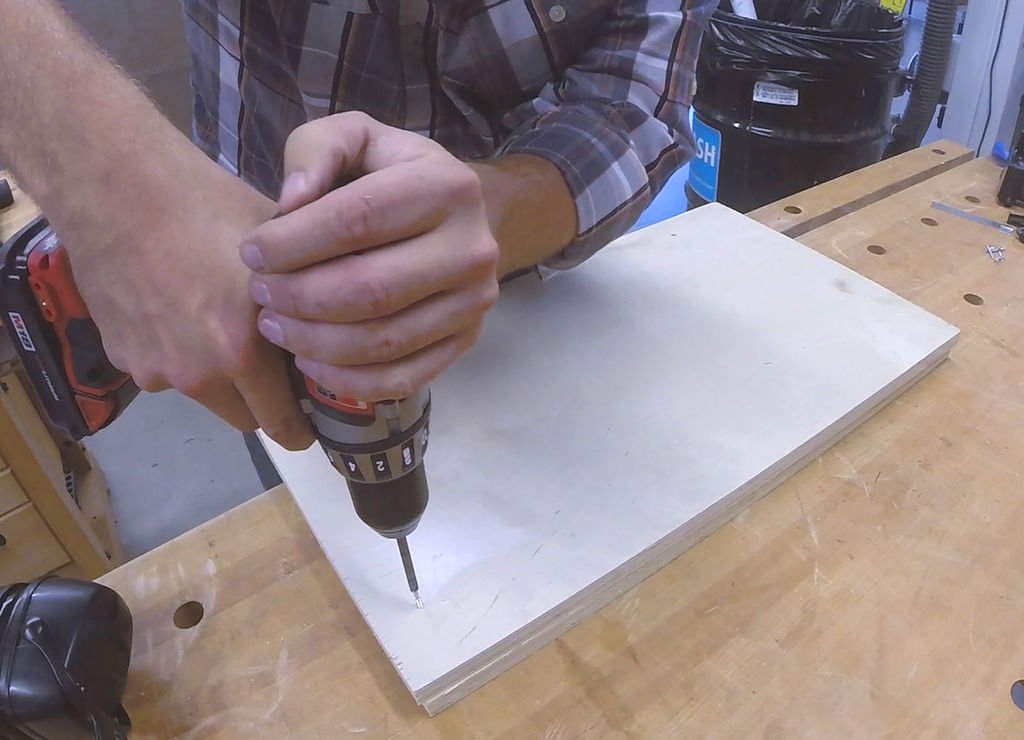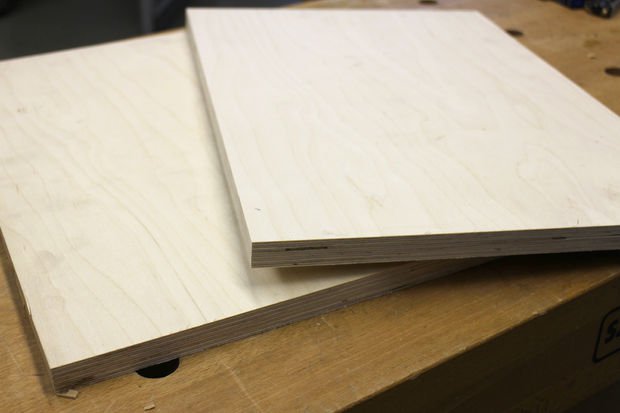 Джон начал изготовление торшера с основания. Для этого он взял фанеру толщиной 20 мм. Вырезал два куска размером 600х600 мм для устойчивости и свободного положения светильника. Хотя торшер сам по себе устойчив, но все же лучше, если основание сделать больше, либо центр тяжести необходимо сместить в зону устойчивости.