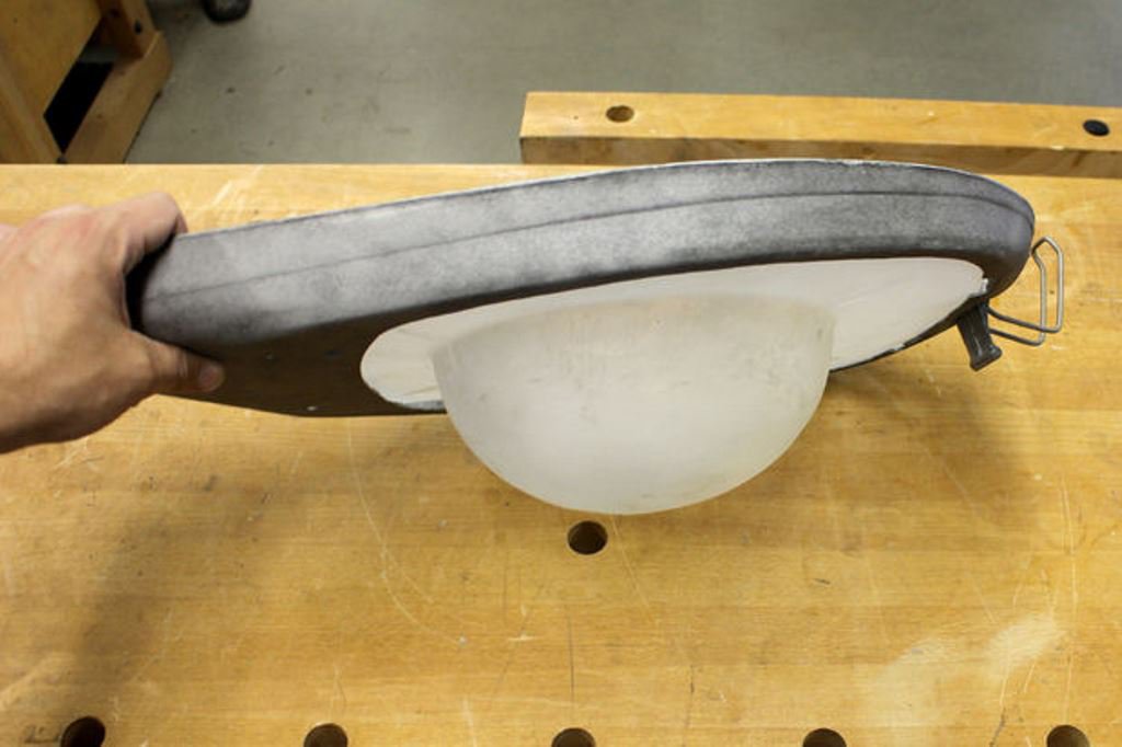 Существует несколько способов изготовления колпака для светильника, но в связи с тем, что у него есть доступ к вакуумному формователю, нужен был только повод, чтобы воспользоваться этим устройством. Возле магазина взглядом отыскал то, что могло бы иметь правильную форму, и купил… арбуз.