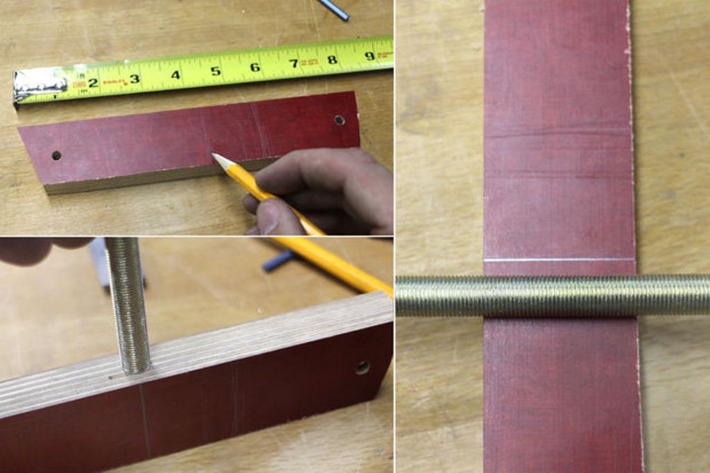 Для того чтобы установить ниппель в деревянный кронштейн, автор идеи нашел центр прохода ниппеля в кронштейне и просверлил отверстие, соответственно диаметру ниппеля. Так как ниппель резьбовой, то просто, закрепив его в патроне дрели, закрутил в просверленное отверстие.