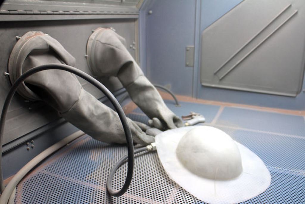 Чтобы получить более ровный и мягкий свет Джон сделал колпак матовым. Для этого использовал пескоструйку, но такого же эффекта можно добиться при помощи обычной наждачной бумаги.