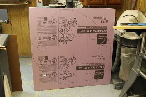 После того, как контур будет нарисован, добавьте круги для горшков (соответствующего размера). Вырезать фигуру лучше всего электролобзиком с фигурными насадками. После того, как резка будет закончена, отшлифуйте края наждачной бумагой с крупным зерном.
