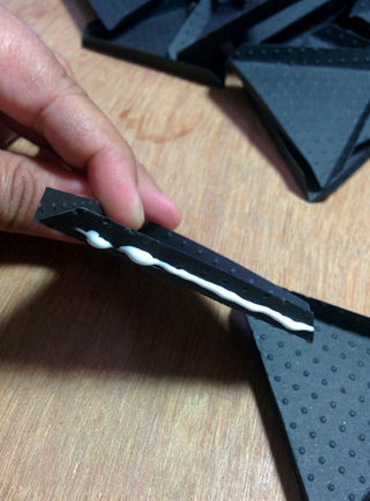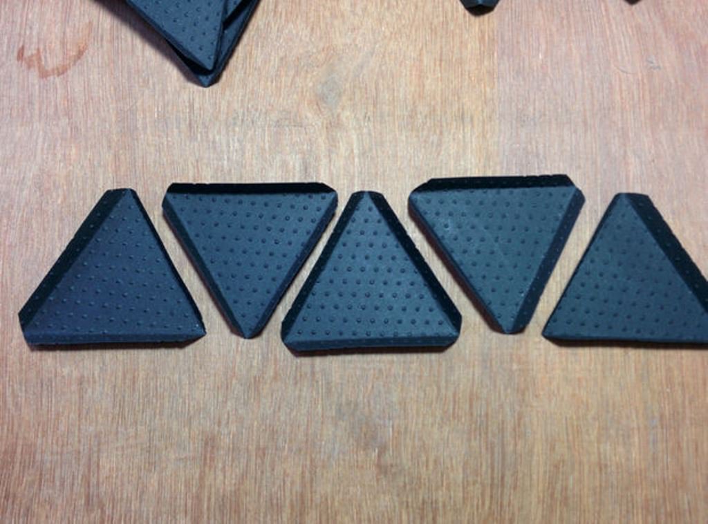 Теперь необходимо сделать по всей поверхности треугольников отверстия. Легче всего сделать эту работу с помощью специальной машинки, которая показана на фотографиях.