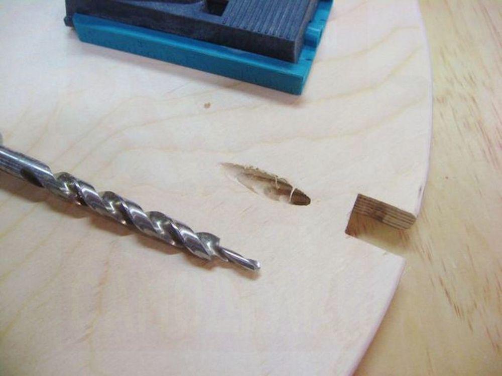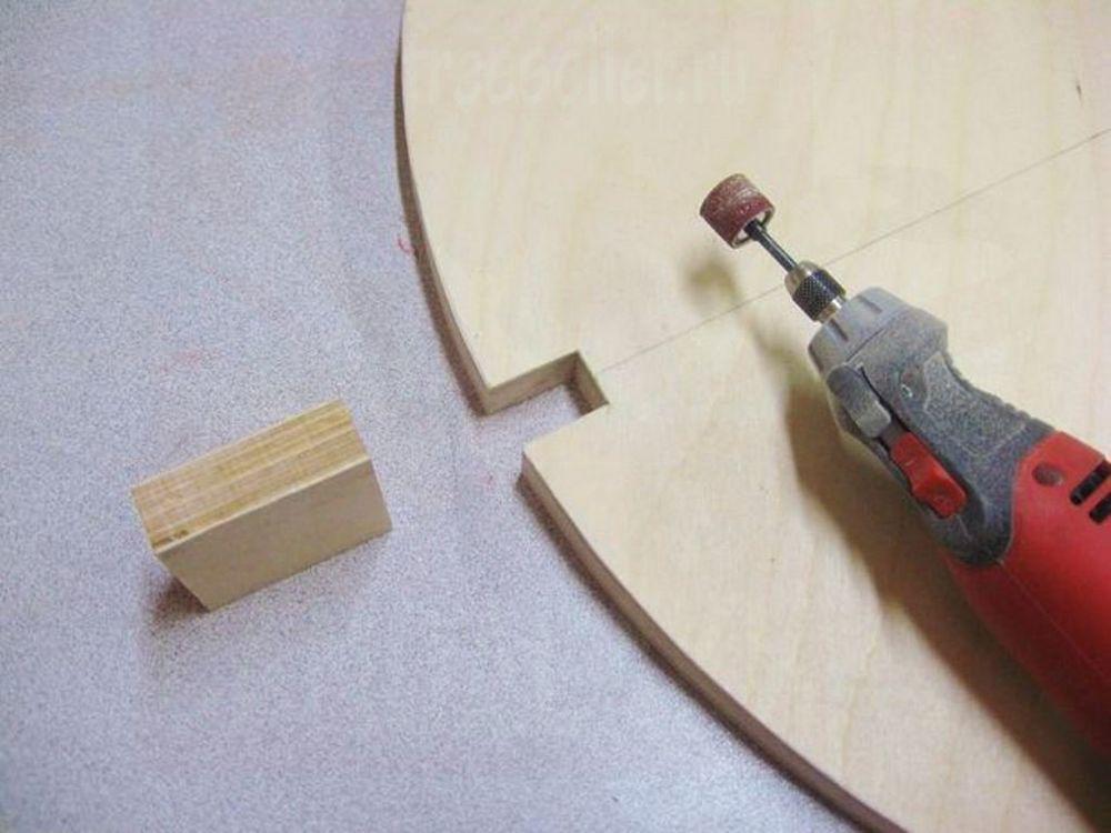 Все вырезанные детали нужно отшлифовать на станке или крупной наждачной бумагой. Ножки будут крепиться к нижней части стола с помощью винта и столярного клея.