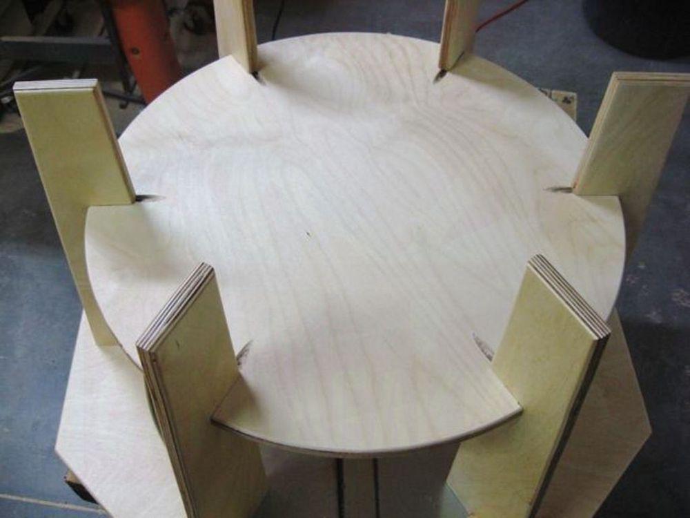 Знак привинчивается потайными винтами к верхней крышке. Верхняя деревянная крышка добавляется позже. Столешница приклеивается и привинчивается потайными винтами. Знак СТОП добавляется в последнюю очередь, его привинчивают и дополнительно проклеивают.