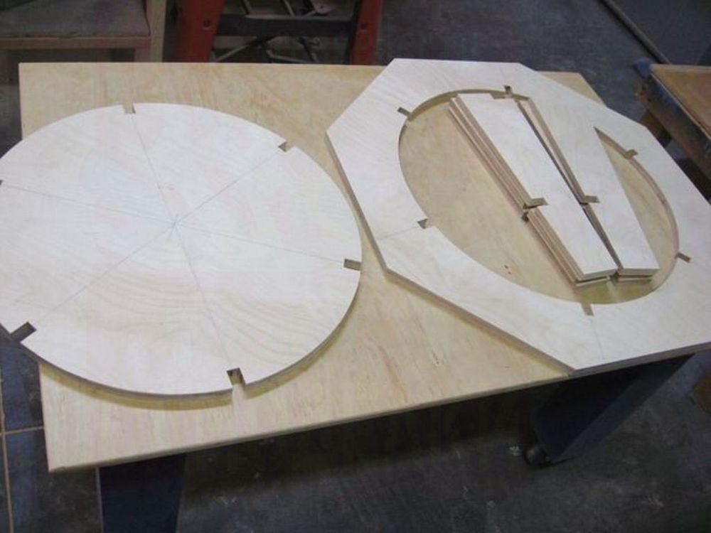 Все фигуры вырезаются с помощью ленточной пилы и ручного лобзика.