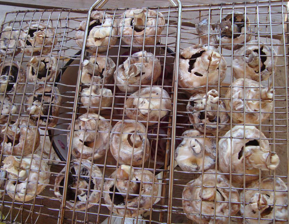 Разожгите костер на мангале и подождите, пока прогорят дрова. Если вы собираетесь параллельно жарить шашлыки, то начните с приготовления мяса, так как на жарку грибов тратится около 15 минут.