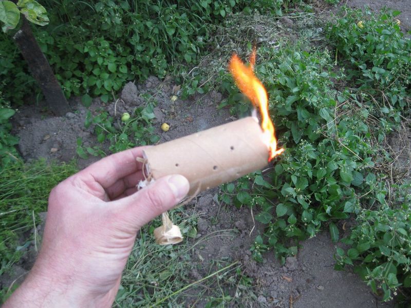 Для этого держа втулку в руке за один конец, другой конец поджигаем при помощи спички или зажигалки. Кстати особенно удобно, это делать при помощи зажигалки.