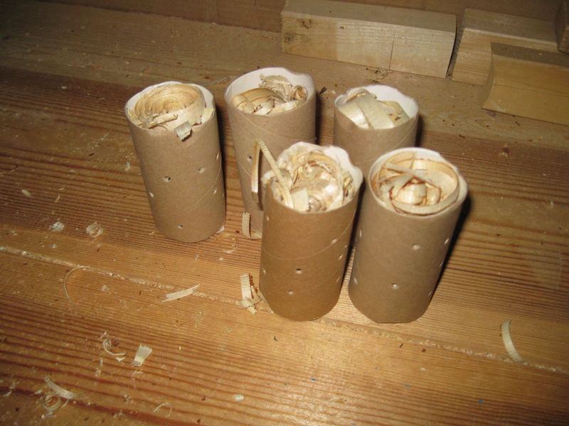 Для этого набиваем стружками картонные втулки.