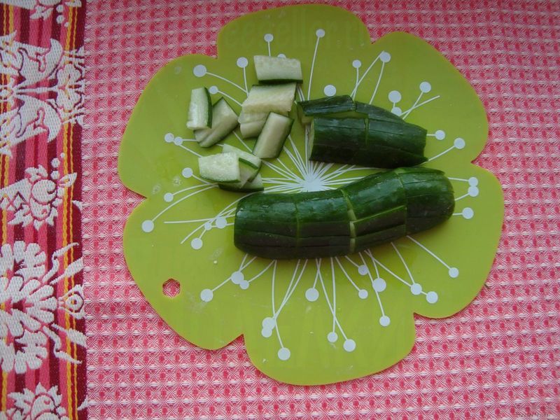 Сначала приступаем к нарезанию овощей. Все ингредиенты должны дать оттенок вкусу блюду, поэтому овощи режем довольно крупно и в продольном виде.
