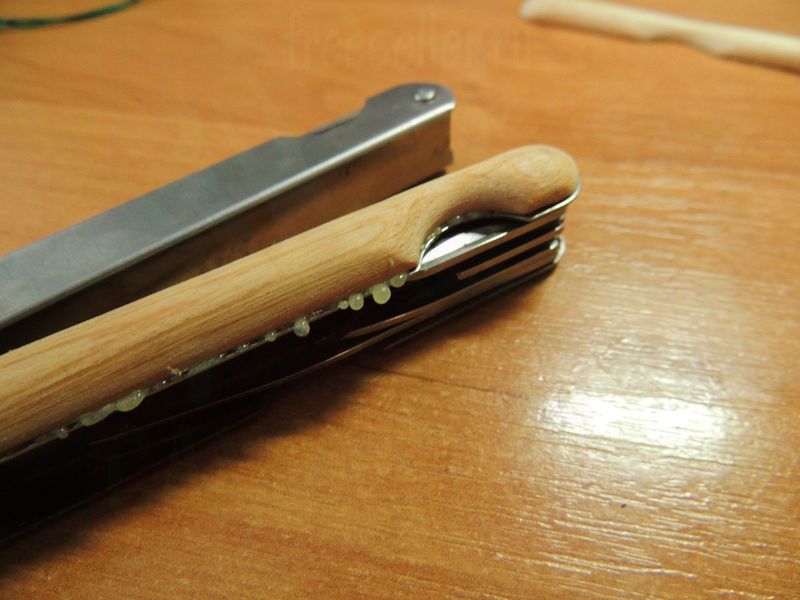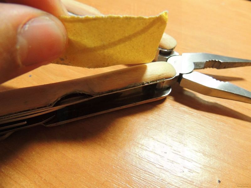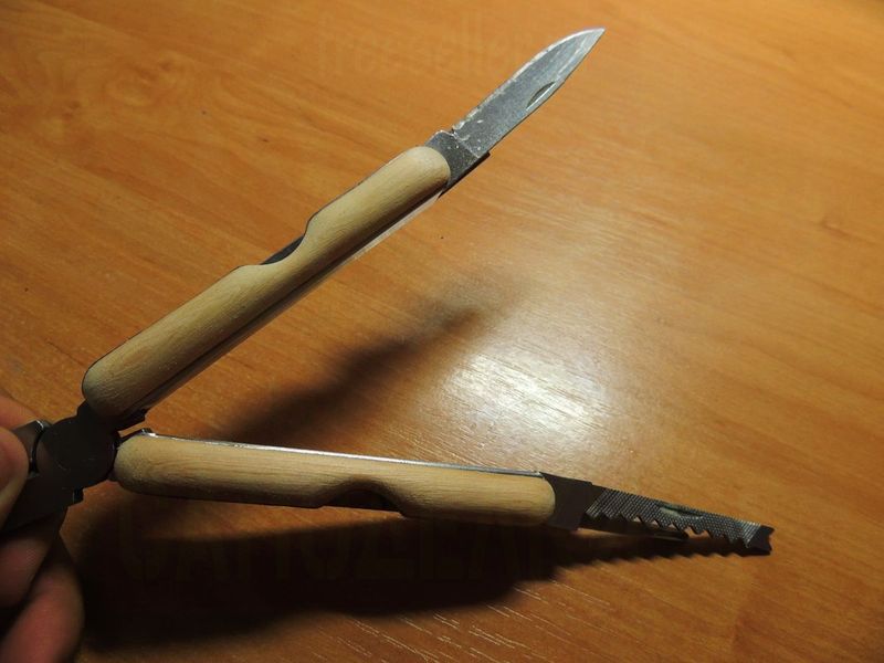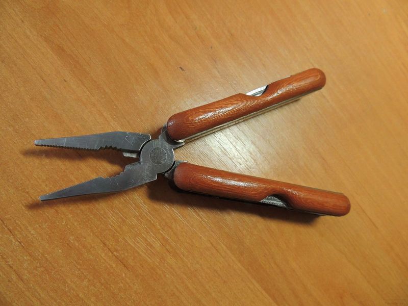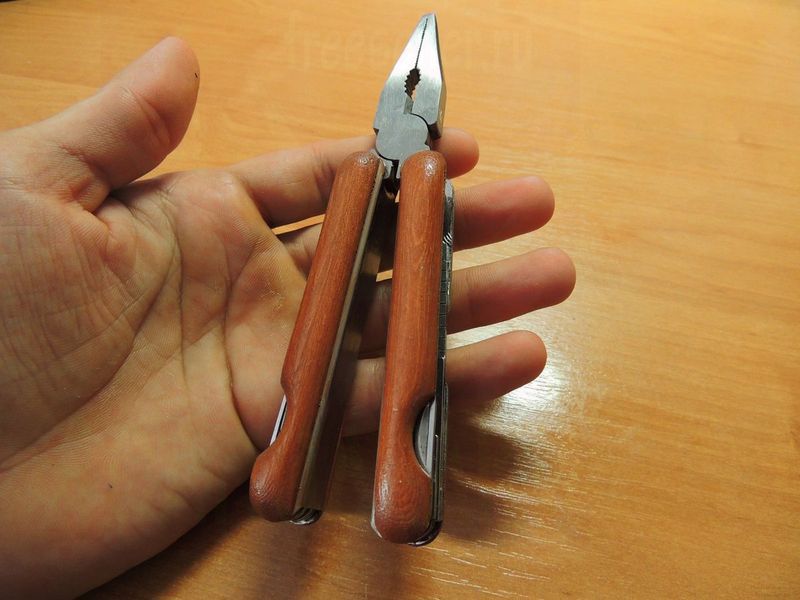Получаем вот такой внешне уже не дешевый мультитул с деревянными рукоятками, а главное - очень удобный и не режущий руку инструмент.