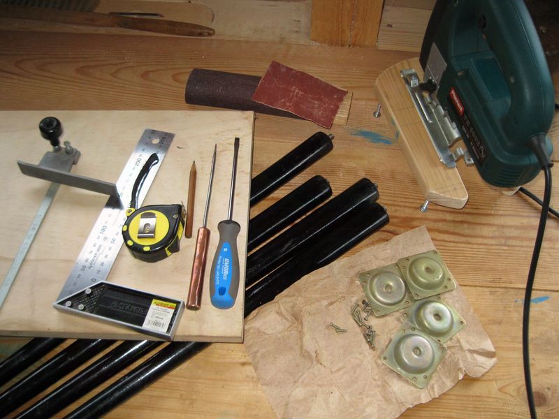 Естественно, я решил их использовать и сделать невысокий разборный столик, оснастив его найденными ножками.