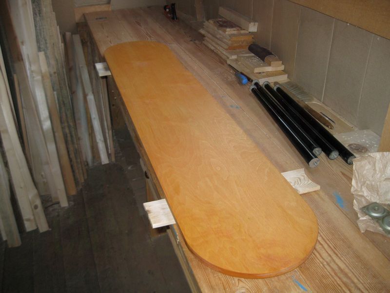 Для начала, я решил сделать торцевые стороны столешницы полукруглыми. Так они будут лучше смотреться у длинного и узкого столика.