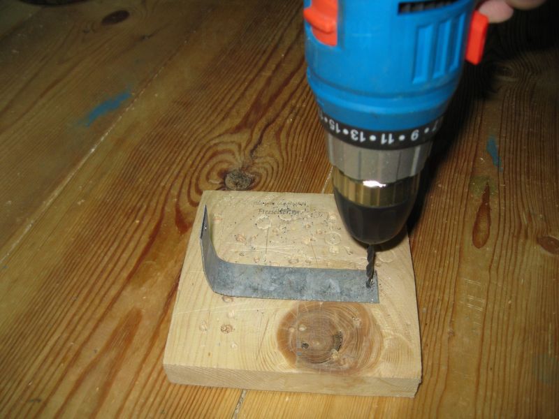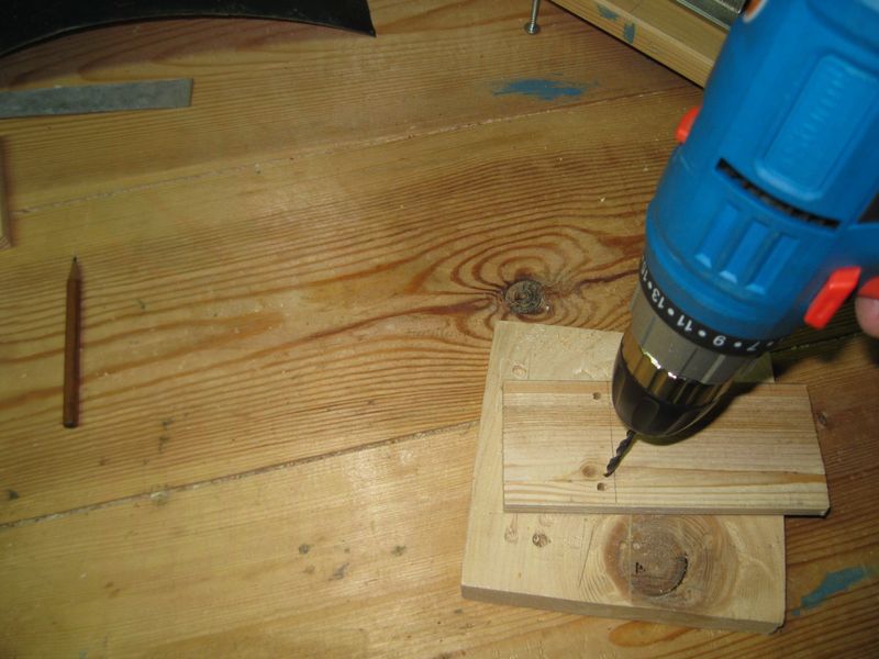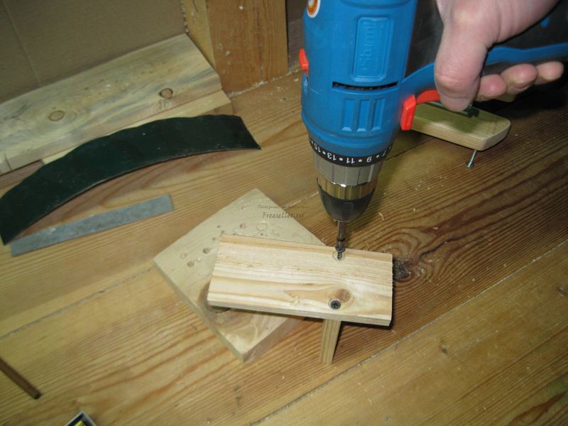 Затем просверливаем в длинной части отверстия под шурупы сверлом диаметром 4 мм.