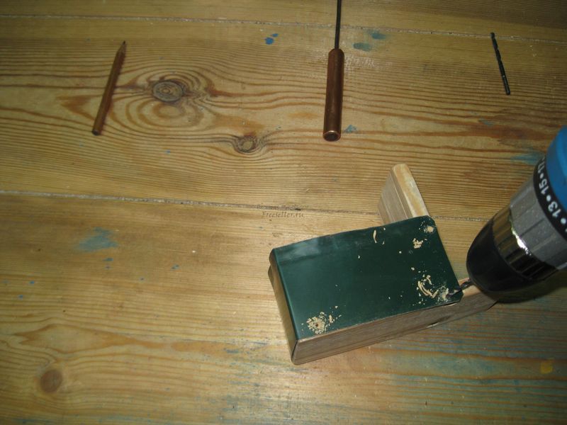 Просверливаем на концах нашей ручки отверстия сверлом диаметром 4 мм.