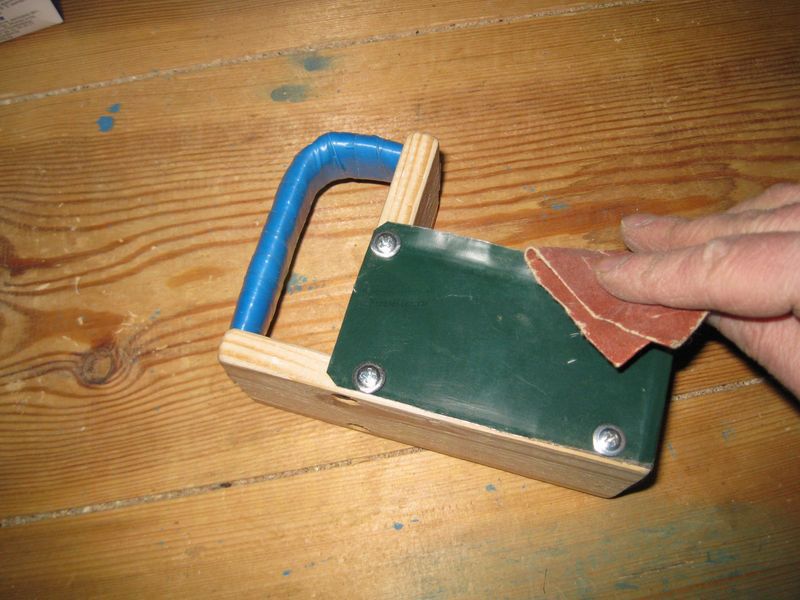 Затем тщательно обрабатываем металлические кромки держателя мелкой наждачной бумагой.