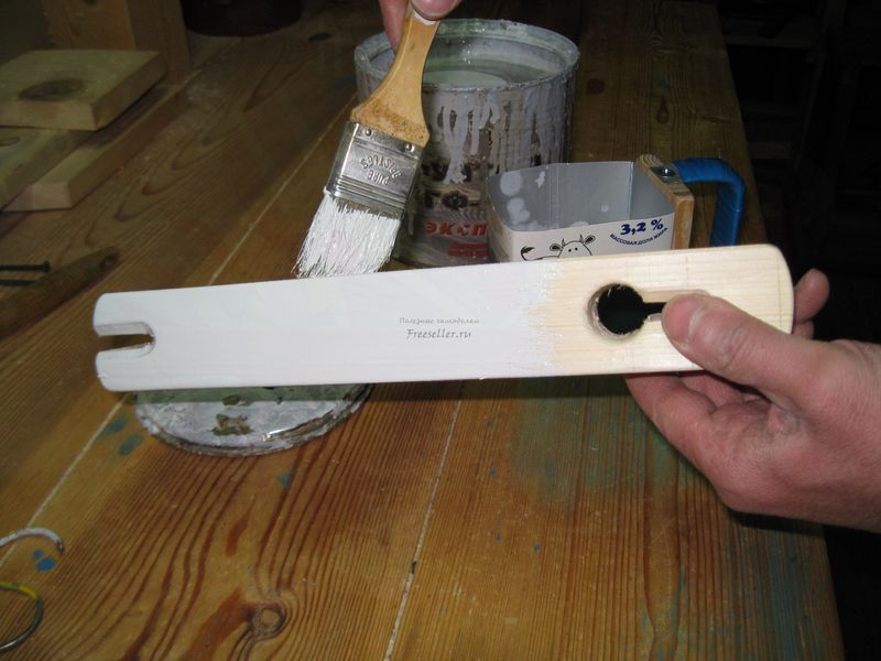 Теперь нужно покрасить его в белый цвет, под цвет основного крепления кормушки, а также под цвет окна и наличников.