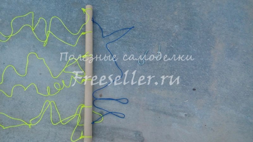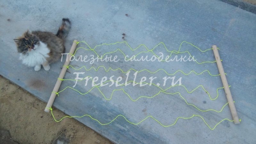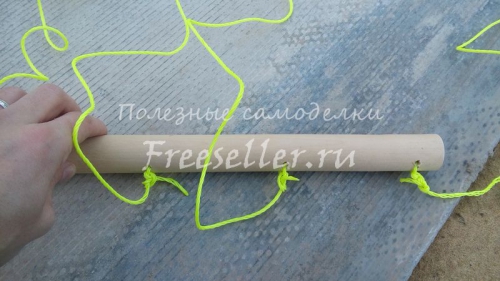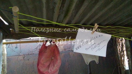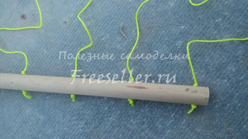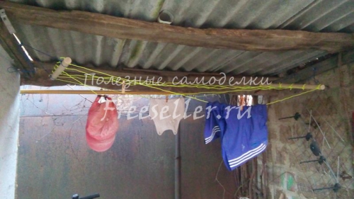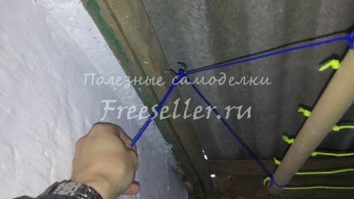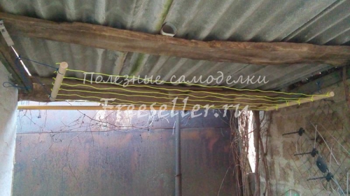 С обеих сторон привязал веревки, при помощи которых данная сушилка будет крепиться.