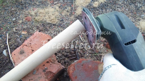 Первым делом держак был разрезан на две одинаковые заготовки по 55 см (длину можно делать на свое усмотрение). Лично я просто распилил пополам, чтобы не оставалось лишних отходов.
