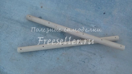 Затем сделал разметку на заготовках и при помощи сверла просверлил отверстия. От края отступил по два сантиметра, а между отверстиями сделал по десять, и получилось на одной заготовке шесть отверстий.