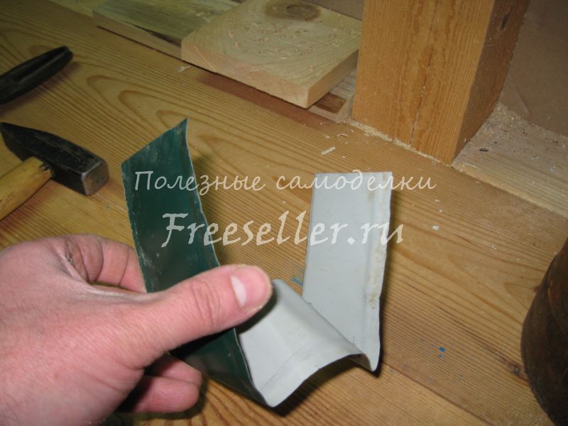 Сначала берем отрезок листа от профнастила и выпрямляем его на наковальне ударами молотка, заодно и упрочняя его края.