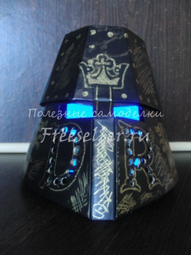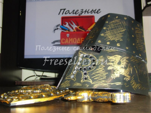 Я решил исправить это и сделать шлем, который будет заодно и подарком к 23 февраля. Шлем я сделал в том же стиле, что и покупной щит с мечом - в тёмных тонах.