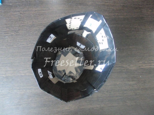 Основной материал - картон и самоклеющаяся плёнка. Для поделки была использована картонная коробка из-под большой пиццы.