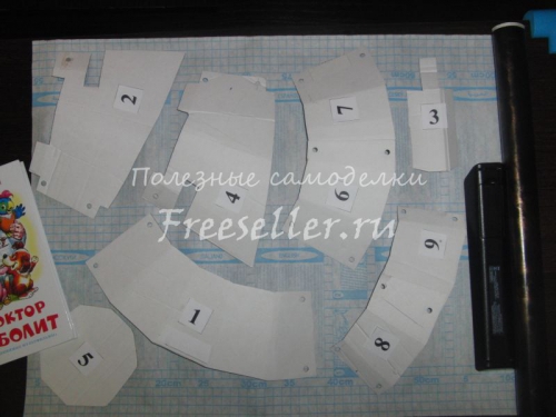 По размеру головы ребёнка были сделаны шаблоны. Всего получилось девять штук. На собранном шлеме я пронумеровал все детали, чтобы было удобно при дальнейшей сборке.