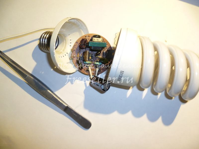 У меня было несколько неисправных энергосберегающих ламп у которых сгорела нить накала в колбе. Как правило, у таких ламп преобразователь напряжения исправен, и его можно использовать в качестве импульсного блока питания или драйвера светодиода. Я сделал себе драйвер для 10 Вт светодиода.