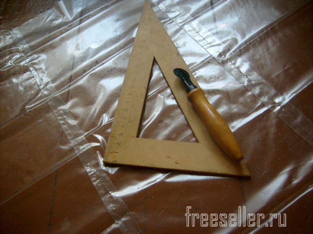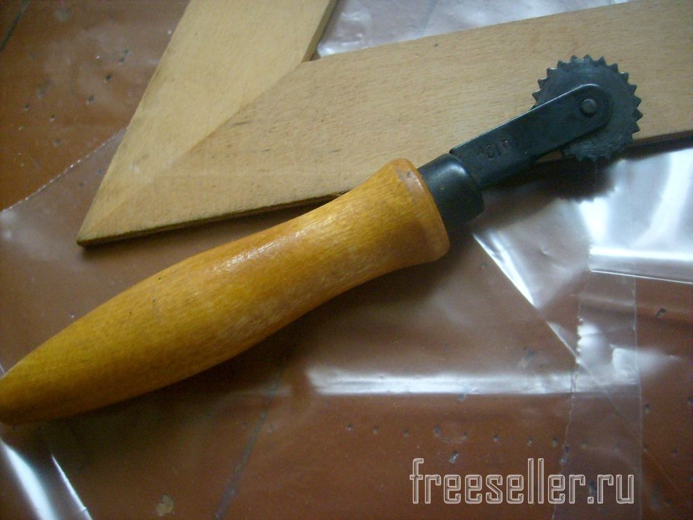 Запаять в целлофан хорошо, например, подарок. Или вещи для долгого хранения, перевозки. Упаковку точно по размеру предметов можно сделать самим и очень быстро. Для этого подойдут готовые целлофановые пакеты или плёнка. Мы смастерим упаковку из старых тетрадных обложек. Используем в работе ножницы, линейку и специальный портняжный маркер с зубчатым колёсиком для переноса выкроек на ткань. Вещь достаточно редкая, но её можно заменить любым подобным инструментом или просто гвоздём.
