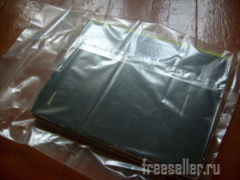 6. Срезаем излишки целлофана вдоль спаянных сторон. Получился пакет нужного размера. Кладём вовнутрь книги. Запаиваем верх пакета.