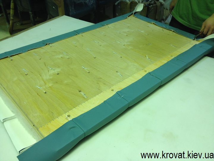 Клеим пенополиуретан к фанере.Желательно использовать специальный клей для поролона.