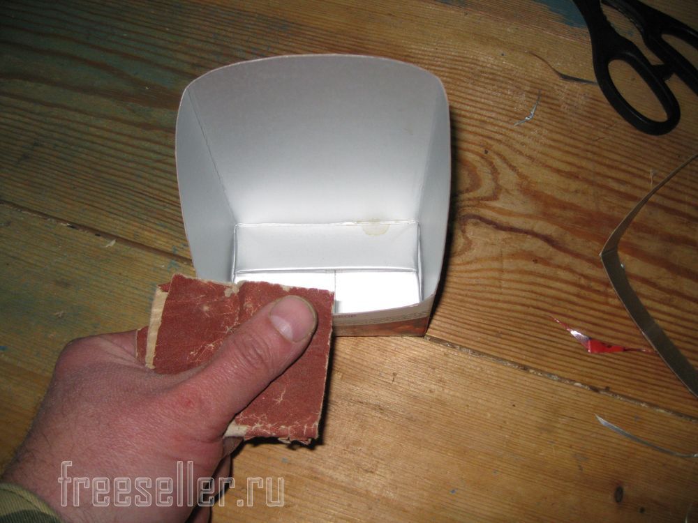 Затем можно слегка обработать острые края передней и боковых стенок нашей мыльницы мелкой наждачной бумагой, чтобы не пораниться. Хотя это и не обязательно делать.