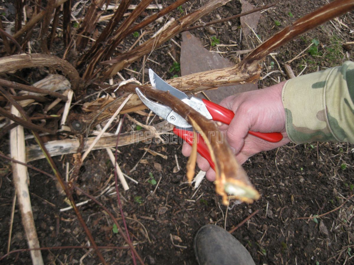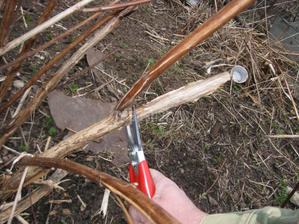 А уже после этого, предварительно убрав все обрубленные ветви для удобного подхода к кусту, мы можем аккуратно и без всяких проблем, обрезать секатором или ножовкой все оставленные пеньки.