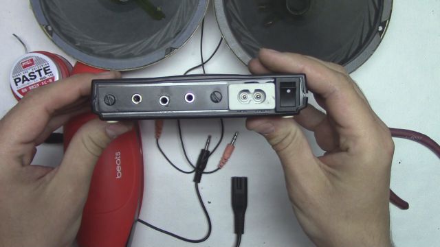 Разъемы взяты от старого магнитофона. Вся конструкция собрана в корпусе старенького модема. Выключатель, снять со старого компьютерного бп. Разъем питания от старого принтера.