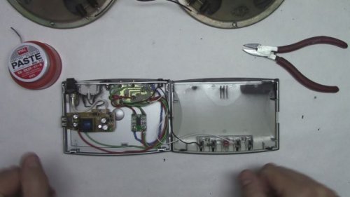 Выкладываем все в корпусе и припаиваем провода. Разъемы клеем на эпоксидный клей или термо-клей. Адаптер питания оказался с разъемом USB в корпусе. Выводим USB вбок, пригодится для зарядки гаджетов.