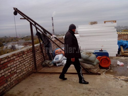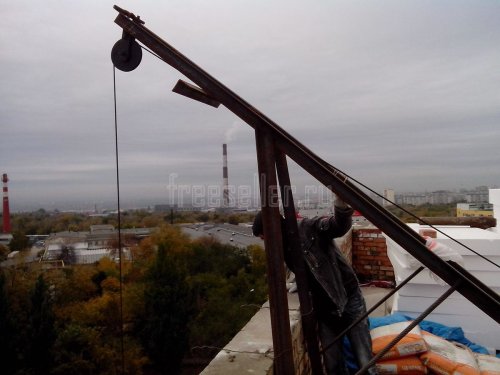 Простейшая конструкция подъемного крана, устанавливаемого на крышу с электроприводом.
