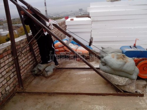 Коструктив – рама, сваренная из уголков, крепление к плите перекрытия. А также дополнительное утяжеление, бетонными блоками и мешками с песком.