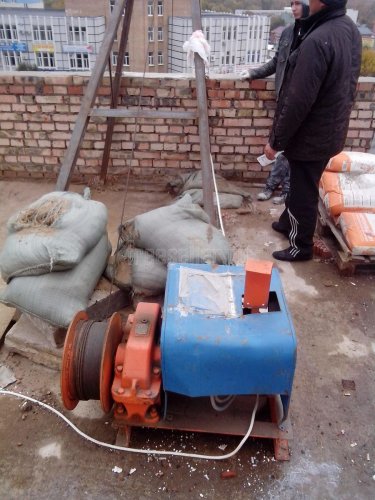 Подъемный механизм с электроприводом редуктором и лебедкой и блоком.