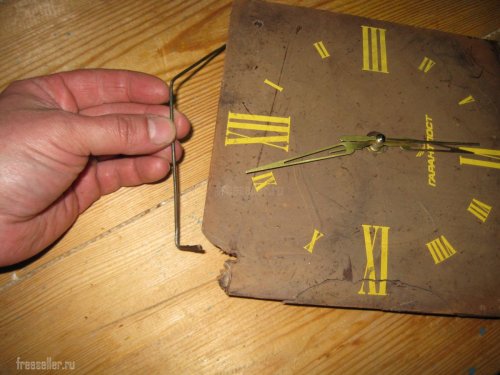 А потом вставил в отверстие часовой механизм и закрепил его, завернув гайку при помощи изогнутых длинногубцев.